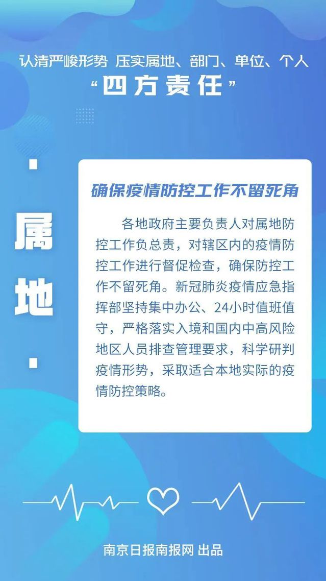 四方责任是指:在疫情期间,全面落实属地、部门、单位、个人的四方责任,建立全社会共同防控体系。