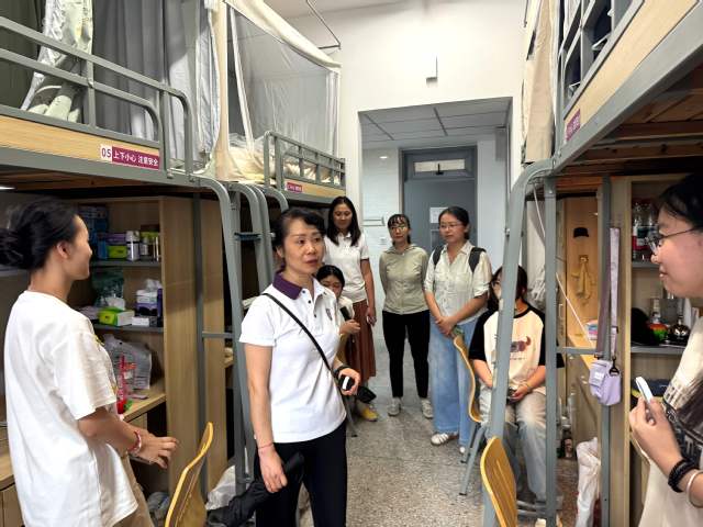 迎新日下午,学院领导率领辅导员们深入新生宿舍,与同学们亲切交谈,详细询问大家的住宿情况与生活需求。“食堂饭菜合不合口?”“生活上有没有遇到困难?”……一句句关切的询问、一声声真挚的关怀如春风拂面,不仅驱散了新生初入校园的忐忑与陌生,更让家的暖意悄然浸润心田,让初来乍到的新生们切实感受到“家”的温暖。
